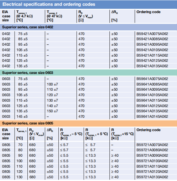 - Lead-free tinned terminations for case sizes 0603 and 0805